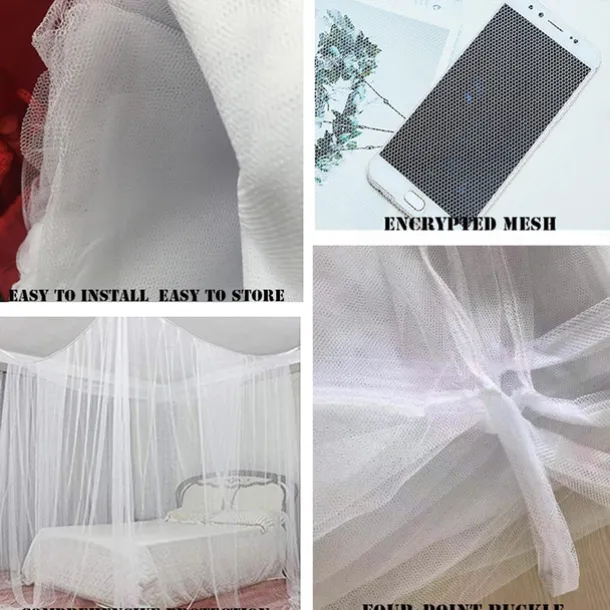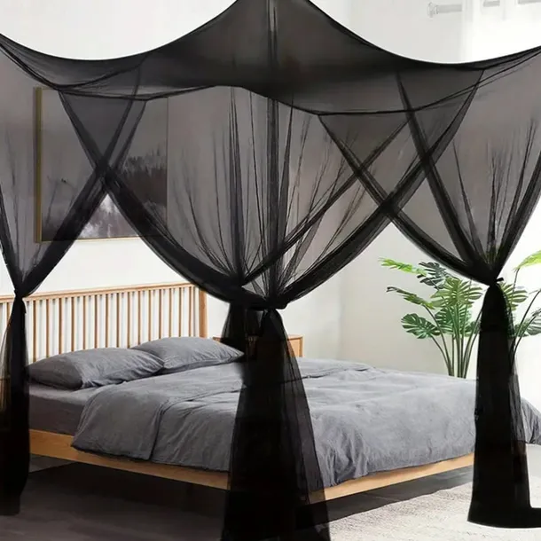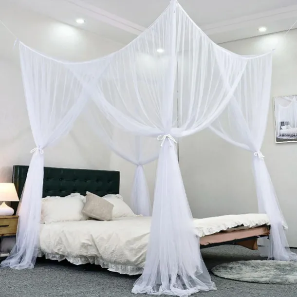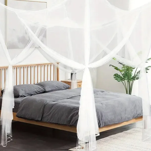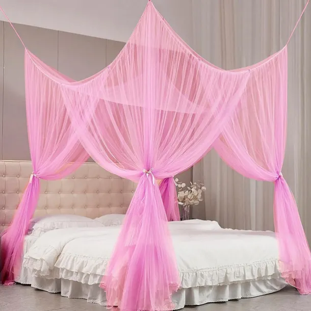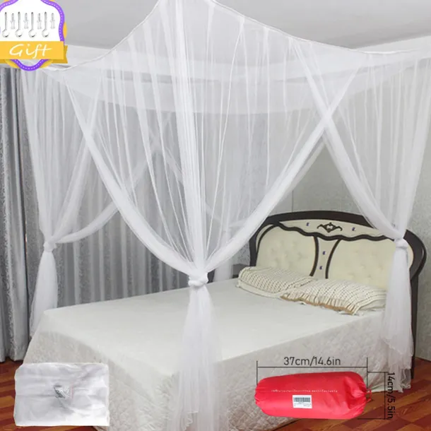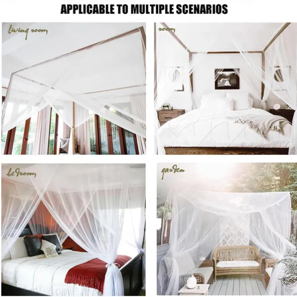 Mosquito Net Bed Canopy, 4 Corner Post Canopy Bed Curtains with 4 Hanging Hooks, 30ft Tether and 4 Tassel Hanging Pendants for Full/Queen/King Size