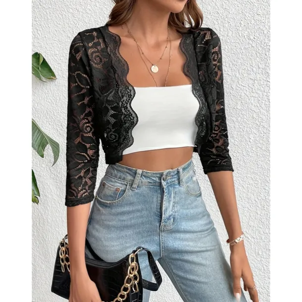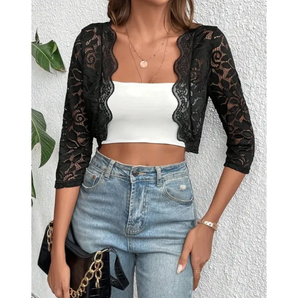 Mother’s Wraps Elegant Sun Protection Long Sleeve Lace Wedding Wraps With Pure Color For Wedding Summer