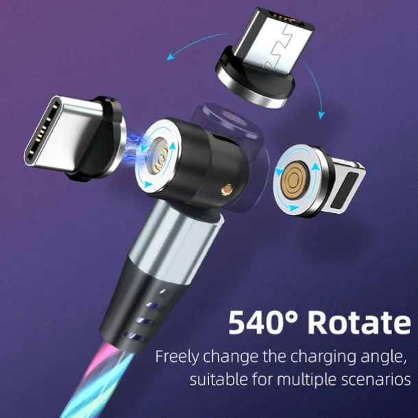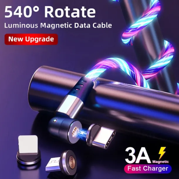 Multi Charging Cable 3.3ft 6.6ft USB A to Lightning / micro / USB C 3 A Fast Charging 3 in 1 Magnetic 540 Rotation For Samsung iPhone Phone Accessory