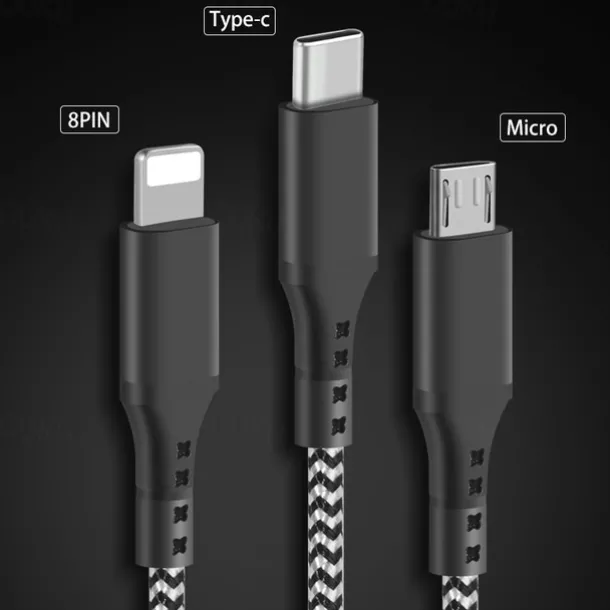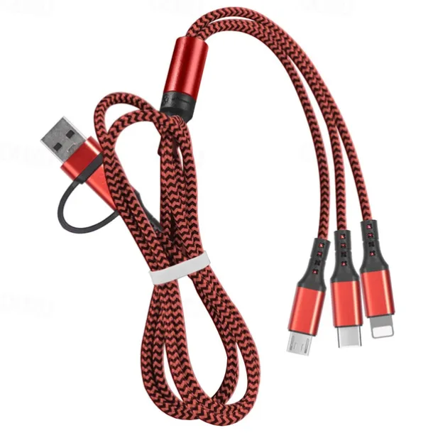 Multi Charging Cable 3.9ft USB A to Type C / Micro / IP 3 A Fast Charging Nylon Braided Durable 3 in 1 For Macbook iPad Samsung Phone Accessory