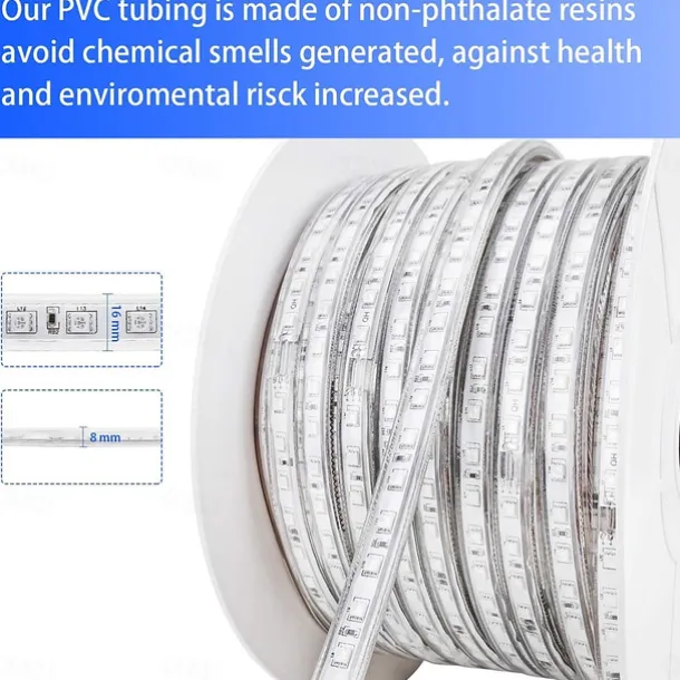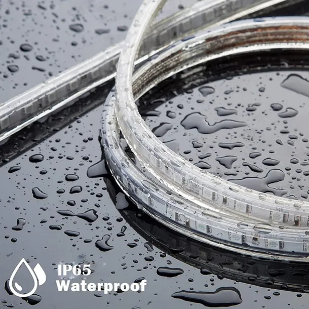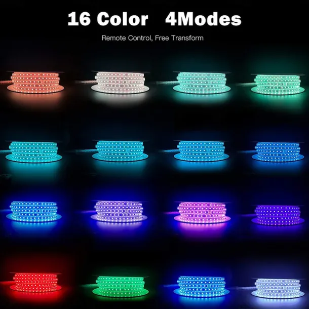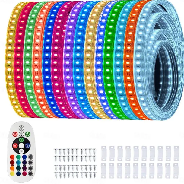 Multi Length LED RGB Strip Lights Dimmable Color Change Fairy Christmas 5050 60LED String Lights IP65 Waterproof Indoor Outdoor Rope Lights with Remote LED Strip Lighting 8x16mm AC220V