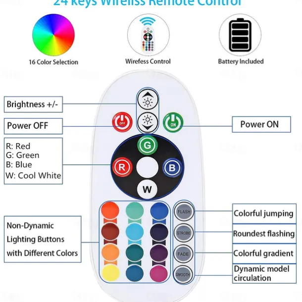 LED Beads Quantity: 720, Light Color: RGB, Power Supply: Plug, Features: Waterproof, Tiktok LED Strip Lights, Cuttable, Quantity: 1 set, Mode: IR Remote Control, LED Type: 5050 SMD, Batteries Included: Yes, Length Range: > 20m (65.6ft), 20m (65.6ft), 15m (49.2ft), 10~14m (32.8~45.9ft), 5~9m (16.4~29.5ft), Control Mode: Remote Control, Suitable Rooms: Dorm,