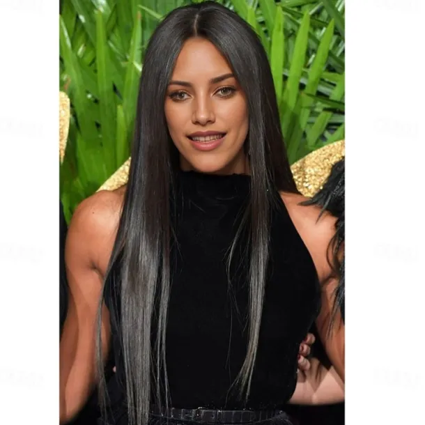Naomi Campbell Inspired Wig Straight Asymmetrical Wig Very Long Black Synthetic Hair Women’s Fashionable Design Soft Natural Black