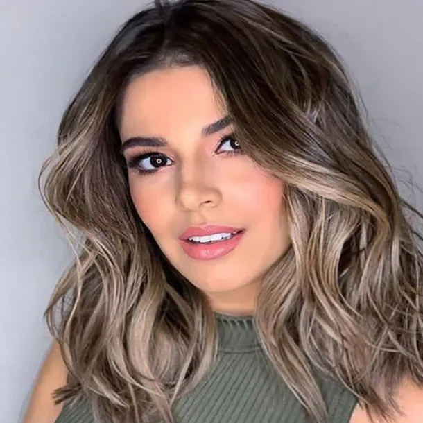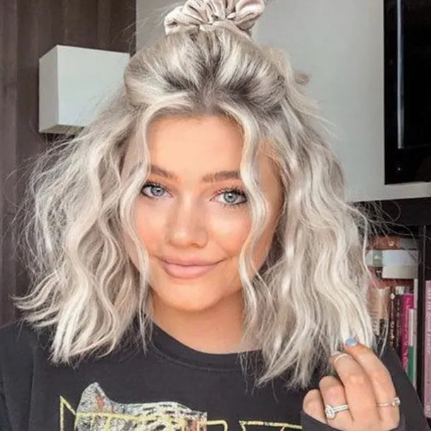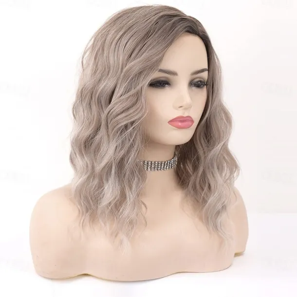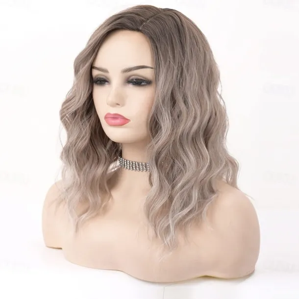 Natalie Portman Wig Ombre Short Curly Wig Synthetic Hair Ash Blonde Wig Ombre Brown Wigs for Women Best Glueless Blonde Wigs with Side Part Mixed Blonde Wig Wigs Christmas Party Wigs