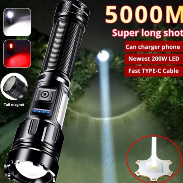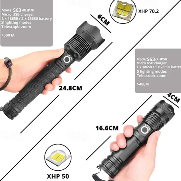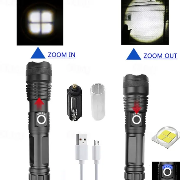 NEW High Power LED Flashlight XHP50Super Bright Usb Rechargeable Torch 18650 Zoom Powerful Flash Light Hunting Lantern (no battery)