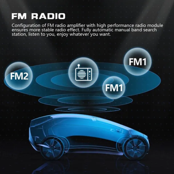 10. Full electronic digital radio search: High-performance digital tuning FM radio automatically scans and stores up to 18 radio channels.