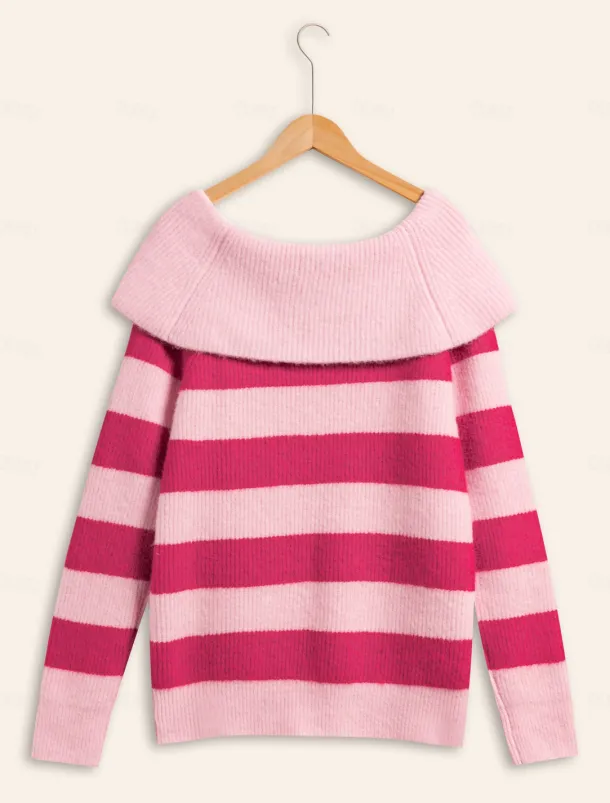 Off Shoulder Ribbed Knit Wool Blend Fall / Winter Causal Rose Red Sweater
