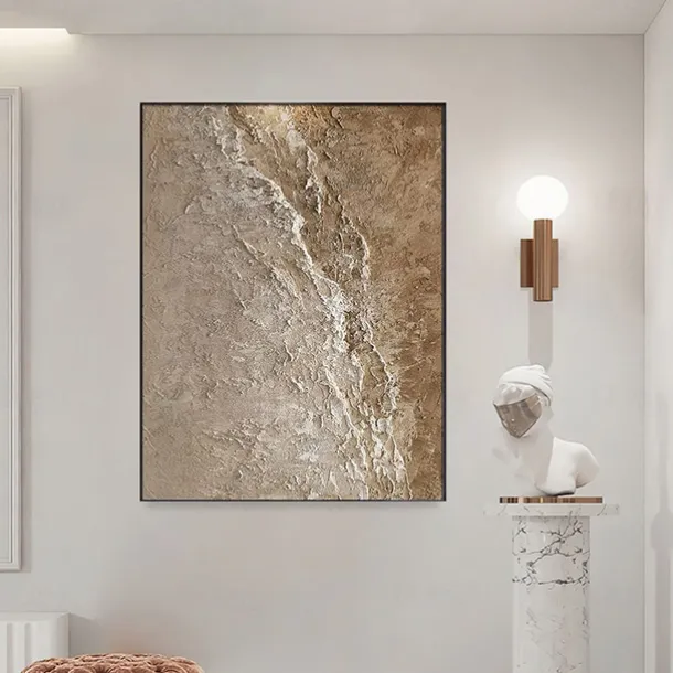 Oil painting Wabi Sabi Painting hand painted Large Beige Art Brown 3D Minimalist Painting on Canvas Brown 3D Texture Wall Art Neutral Beige Arch Plaster Painting