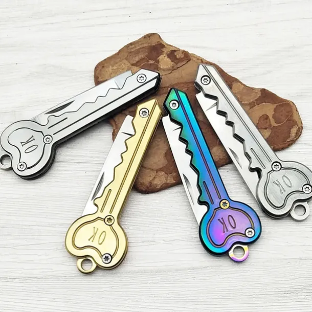OK Foldable Knife Key Chain Mini Pocket Knife Box Cutter Keychain Pendant Color Handle Decoration
