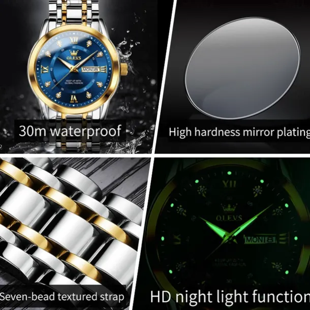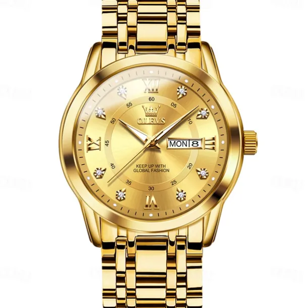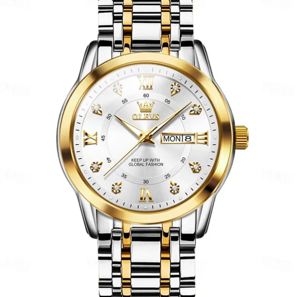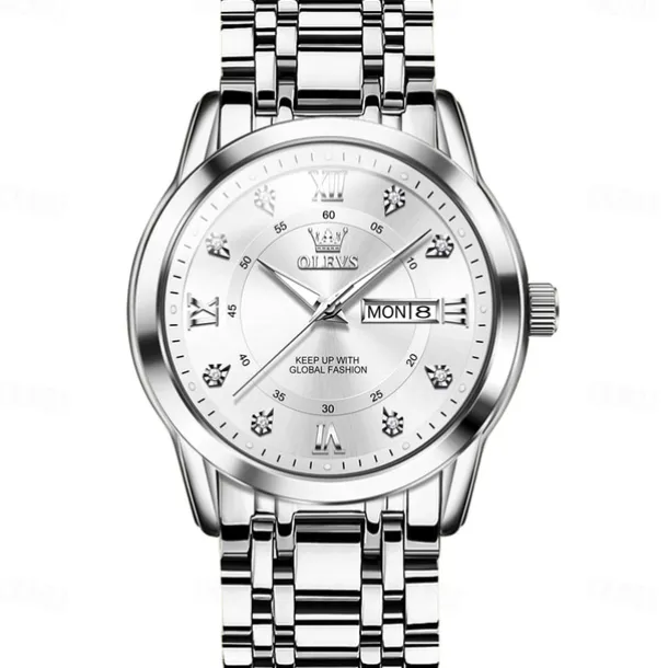 OLEVS Men Quartz Watch Fashion Business Wristwatch Luminous Calendar Date Week Waterproof Steel Watch