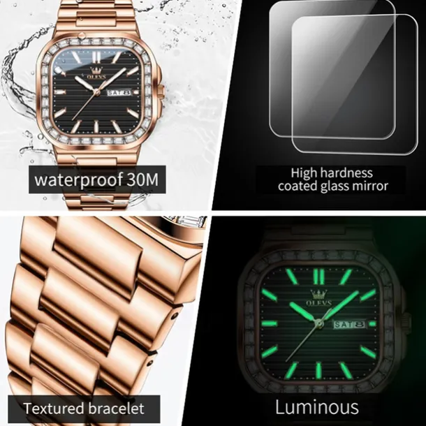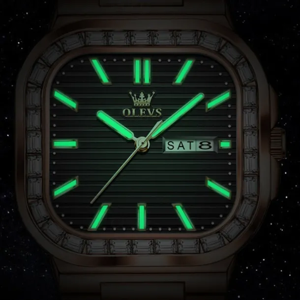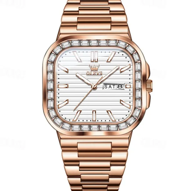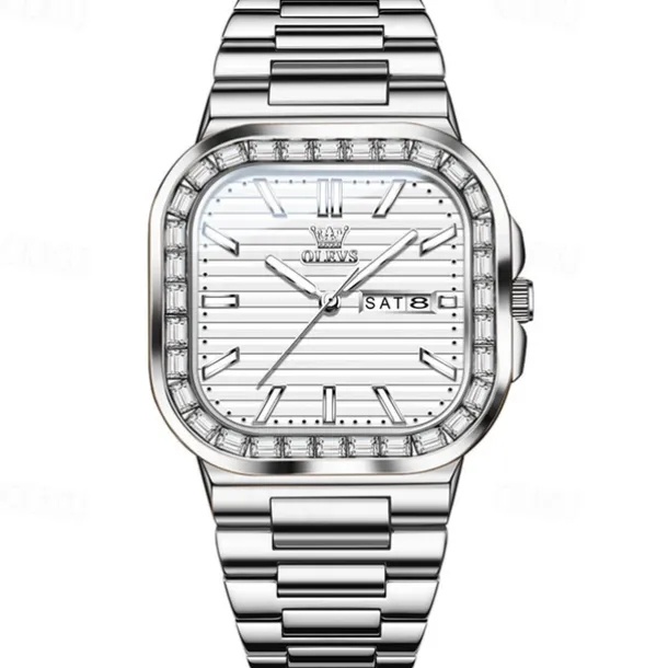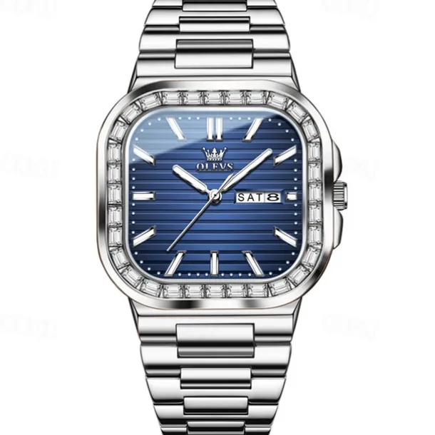 OLEVS Mens Tank Watch Minimalist Diamond Watch Fashion Dress Analog Quartz Mens Watches Rectangular Waterproof Stainless Steel Luminous with Date Watches for Men