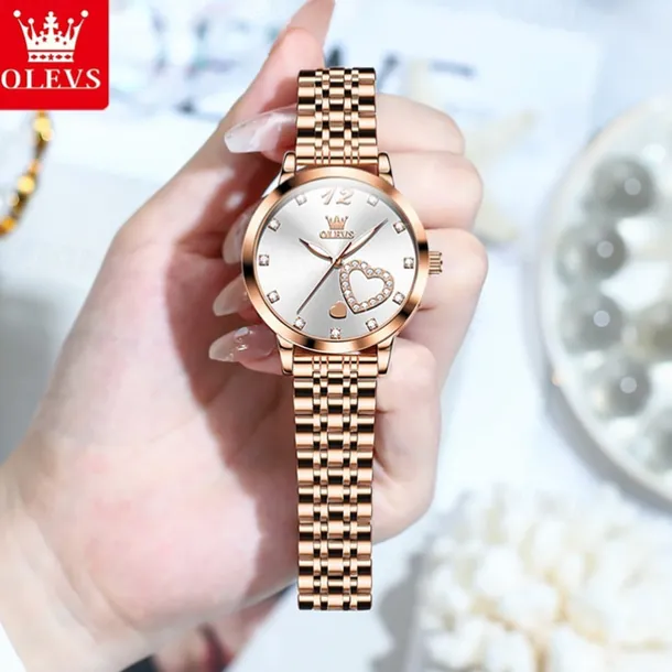 Olevs Women Steel Band Watch Decorative Luminous Simple Leisure Quartz Watch Waterproof Sports Diamond-Set Women Wristwatch