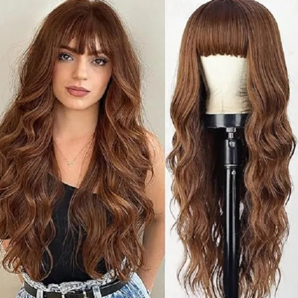 Ombre Blonde Wig with Bangs Long Blonde Wavy Wigs for Women Synthetic Curly Wavy Wigs with Dark Root Middle Part Heat Resistant Wig for Daily Party Wear Halloween Wigs