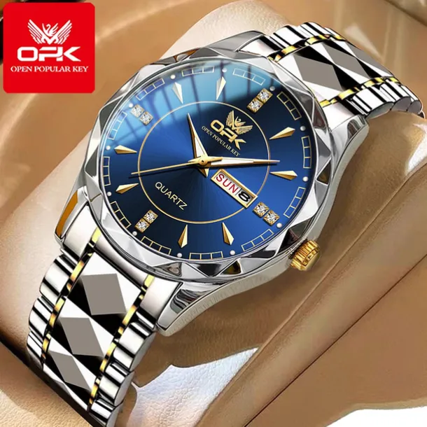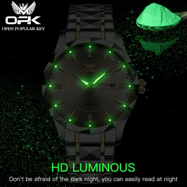 OPK Luxury Brand Watch Stainless Steel Business Double Calendar Waterproof Men’s Watch Multi functional Night Light Watch