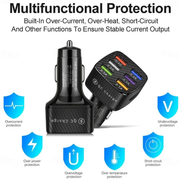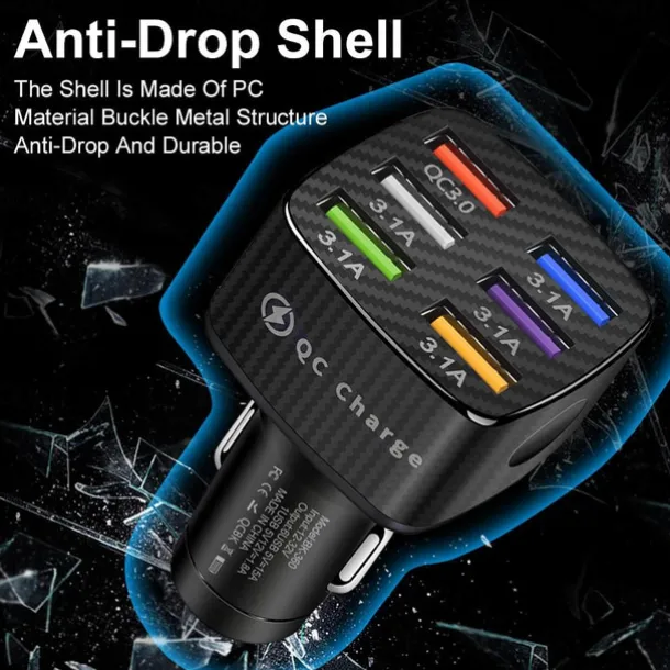 OTOLAMPARA 6USB Charger Cigarette Lighter Socket QC3.0Charger In Car Adapter Accesso For Iphone14 Pro Max Car For Samsung Huawei Xiaomi Redmi Car Charger QC3.0