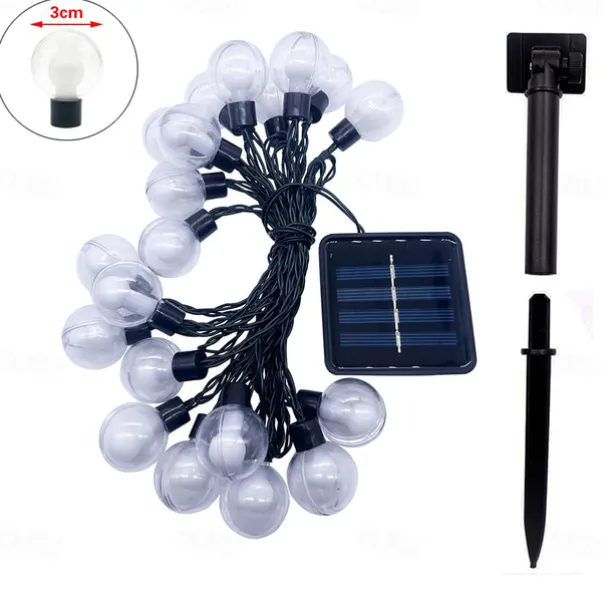 LED Beads Quantity: 20 50, Light Color: Warm White, RGB, Blue, Netual White, Power Supply: Solar Energy, Type: String Lights, Style: Holiday Lights, Globe / Ball String Lights, Features: Patio, Waterproof, Solar, Party, Holiday, Quantity: 1 set, Wattage (W): 5, 2, Voltage (V): Solar Powered, Length: 5m, 7m, Mode: 2 Modes: (1.Constant 2.Flashing), LED Type: 2835 SMD, Batteries Included: Yes, IP Rating: IP65, Control Mode: Button, Light Control, Occasion: Outdoor,