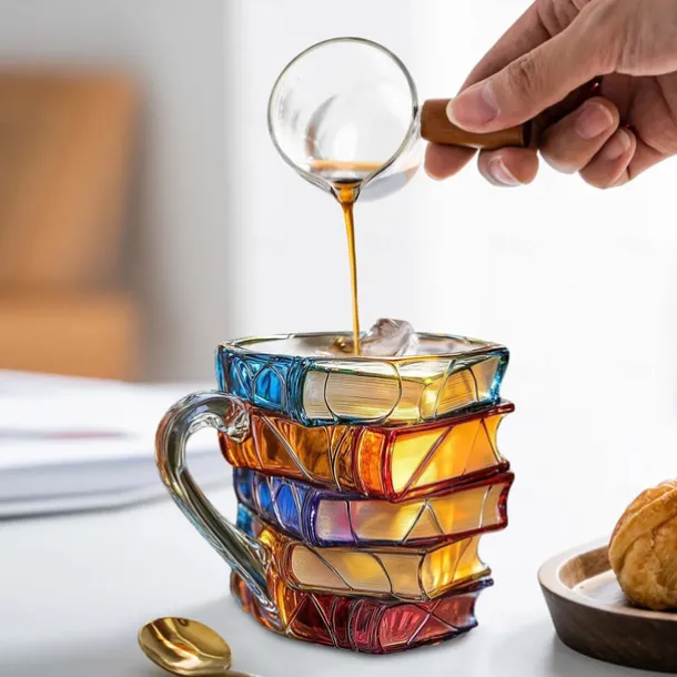 Painted Book Mug 300ml/10oz Guitar Coffee Cup Book Coffee Mug Unique Colorful Resin Books Stack Coffee Cup Collection Gift Ideal for Book Lover Gifts