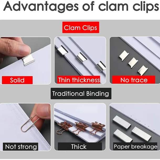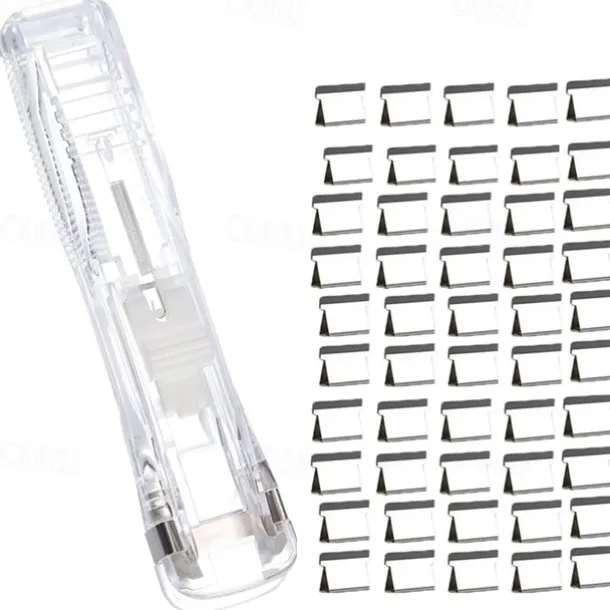 Paper Clam Clip Dispenser Handheld File Document Clipper with 50 Reuseable Stainless Steel Refill Clips for Home Office School