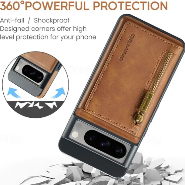Phone Case For Google Pixel 8 Pro Back Cover Magnetic Card Slot Retro TPU PU Leather