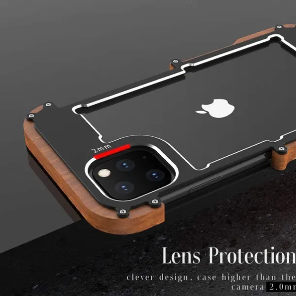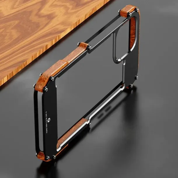 Phone Case For iPhone 15 14 Pro Max Plus 13 12 11 Pro Max Bumper Frame 4 Corners Protection Solid Color Wooden Aluminum Alloy