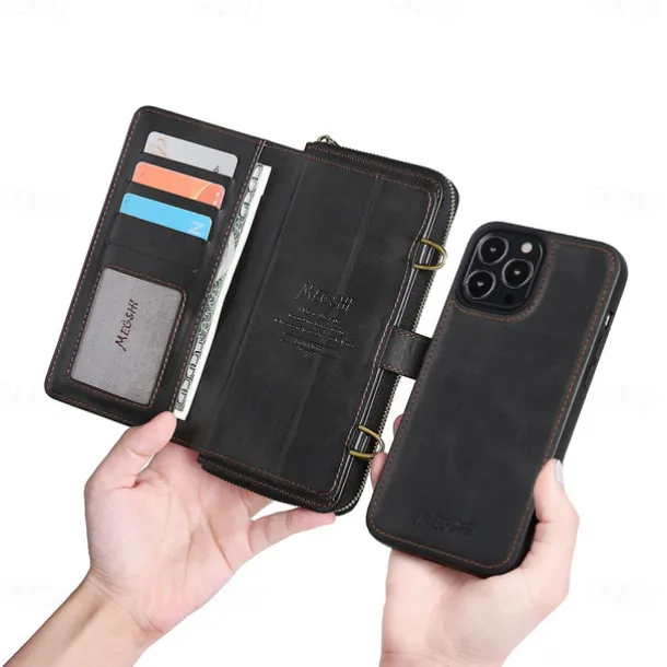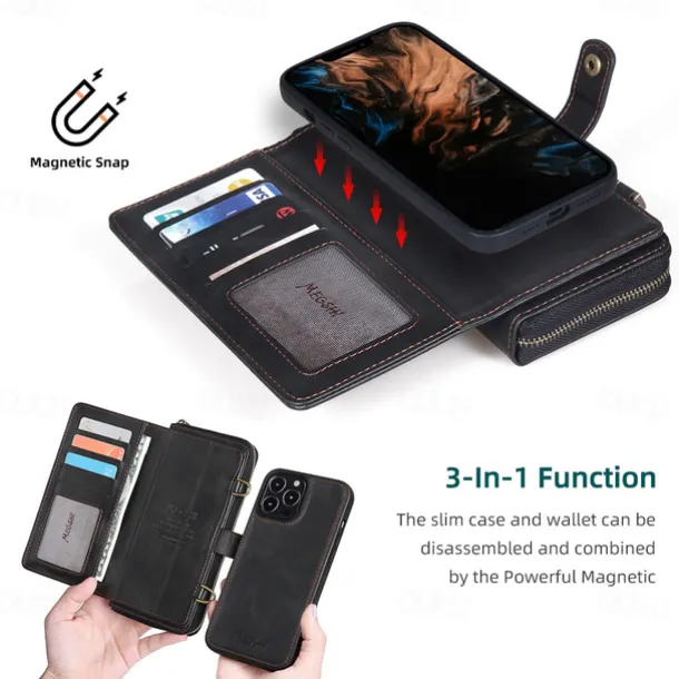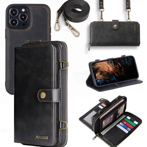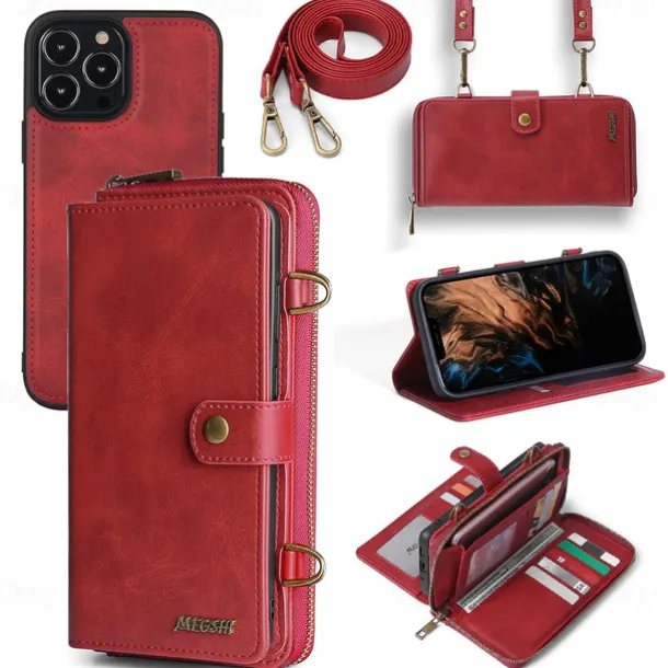 Phone Case For iPhone 15 14 Pro Max Plus 13 12 11 Pro Max Mini Wallet Case Magnetic with Lanyard Shockproof Solid Color TPU PC PU Leather