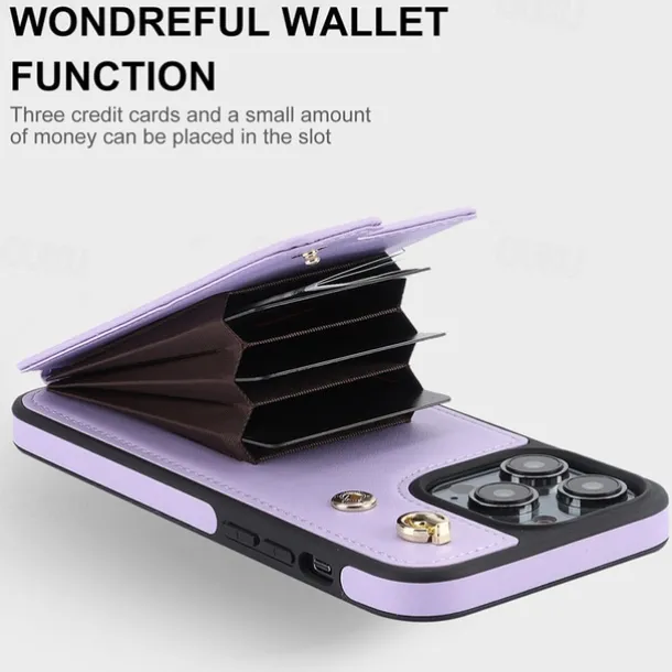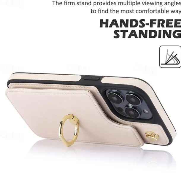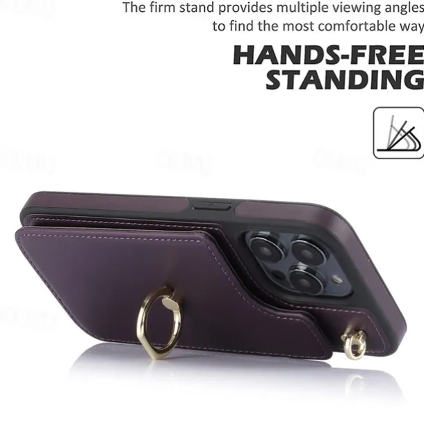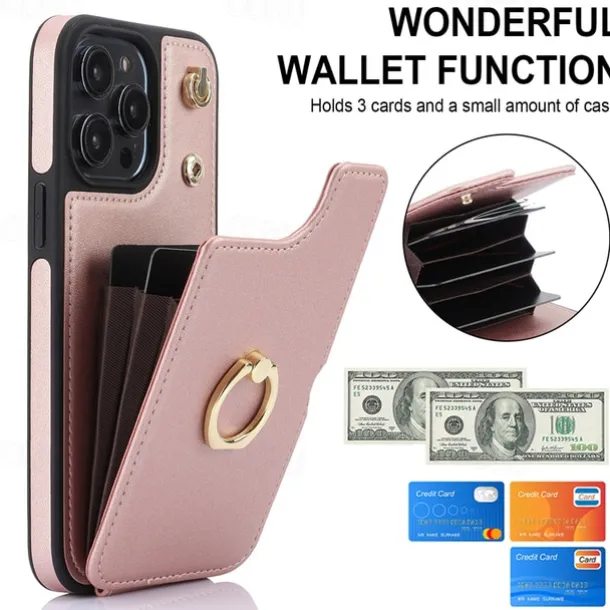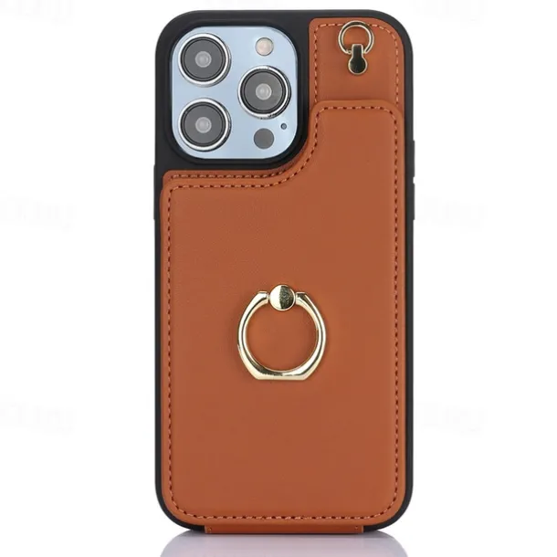 Phone Case For iPhone 16 15 14 Pro Max Plus 13 12 11 Pro Max Back Cover Ring Holder with Lanyard Card Slot Retro TPU PU Leather