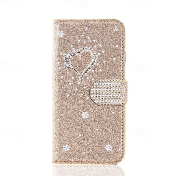 Phone Case For iPhone 17 Pro Max 17 Air 16 15 14 Pro Max Plus 16e 13 12 11 Pro Max Mini Wallet Case Flip Cover with Stand Holder Bling Glitter Shiny Rhinestone PU Leather