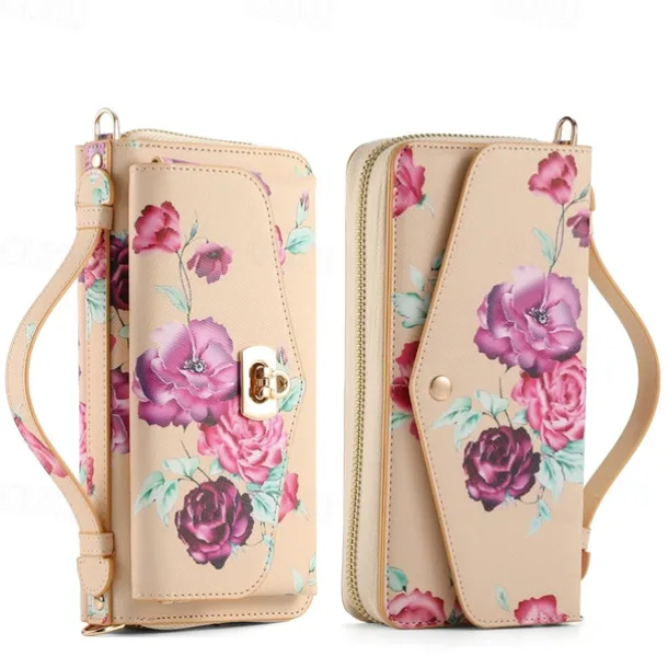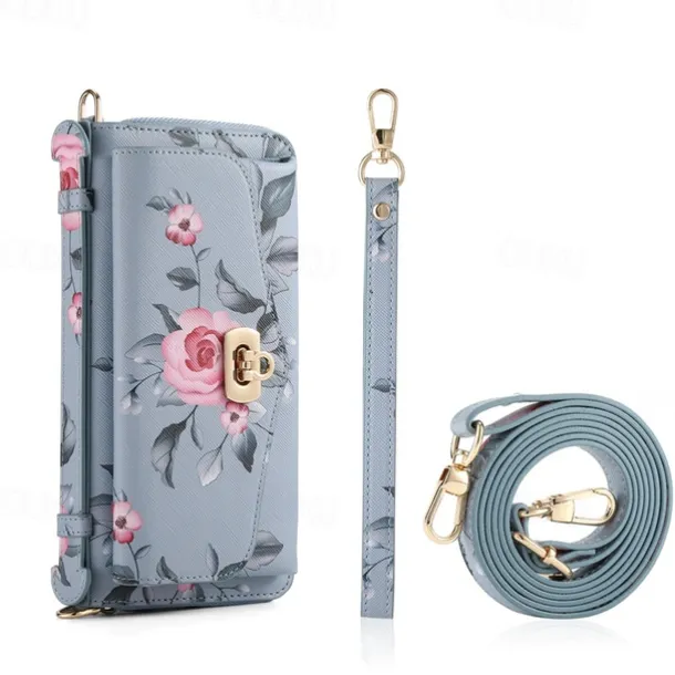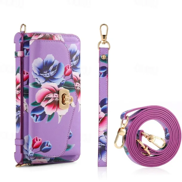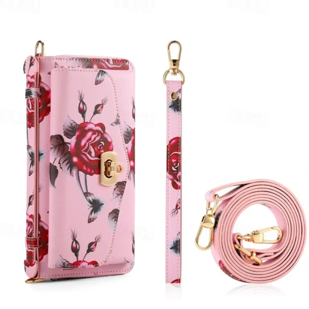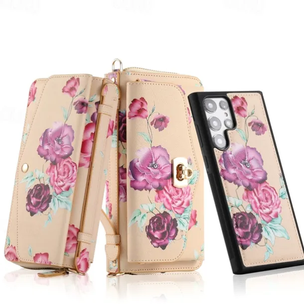 Phone Case For S24 S23 Ultra Plus S22 Back Cover Wallet Case Zipper with Lanyard with Wrist Strap Retro TPU PU Leather