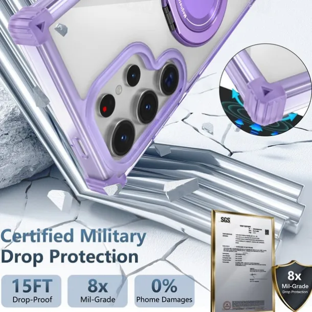 Phone Case For Samsung Galaxy S24 S24 FE S23 Ultra Plus S22 Plus Ultra Back Cover with Stand Holder Magnetic Shockproof Retro PC