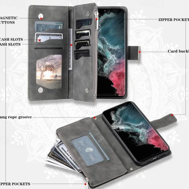 Phone Case For Samsung Galaxy S25 S23 S22 S21 FE S21 Ultra Plus A54 A53 A33 A13 S20 Wallet Case Flip Wallet Zipper Tile TPU PU Leather