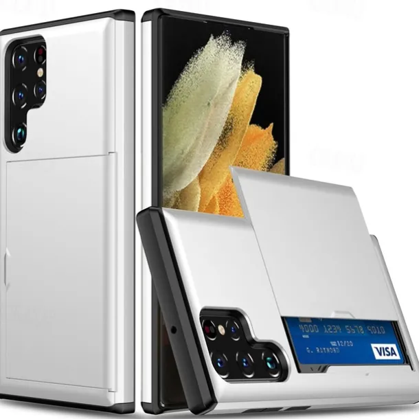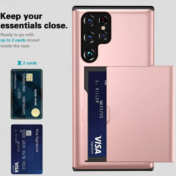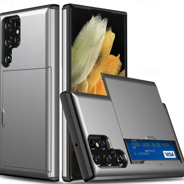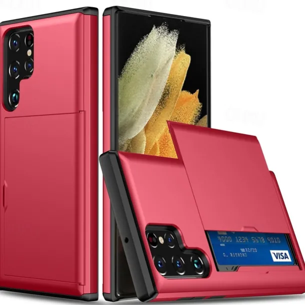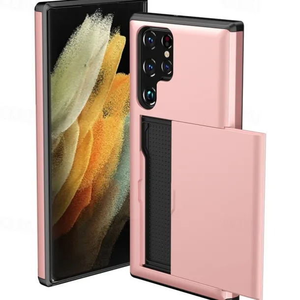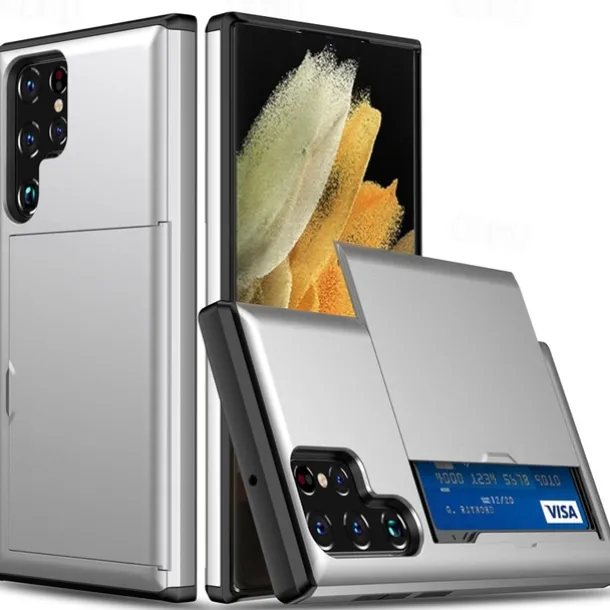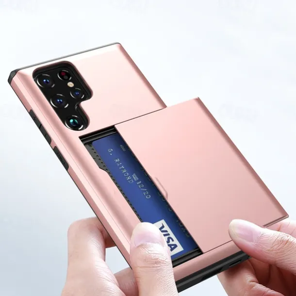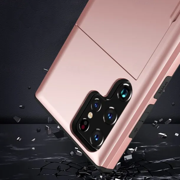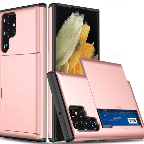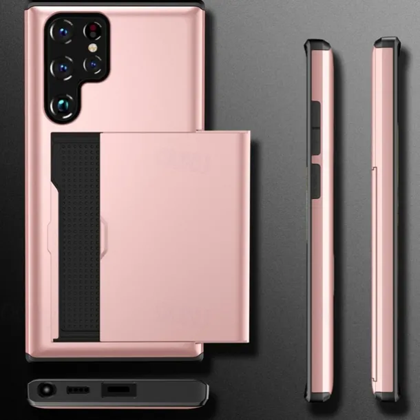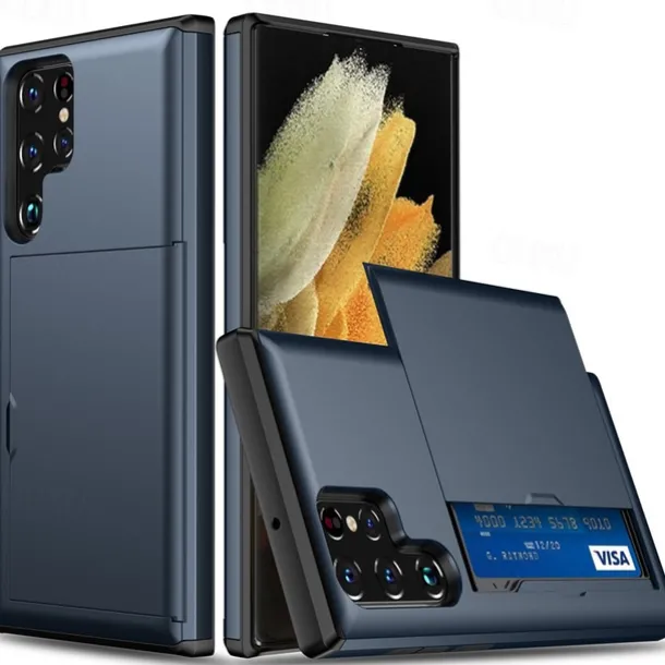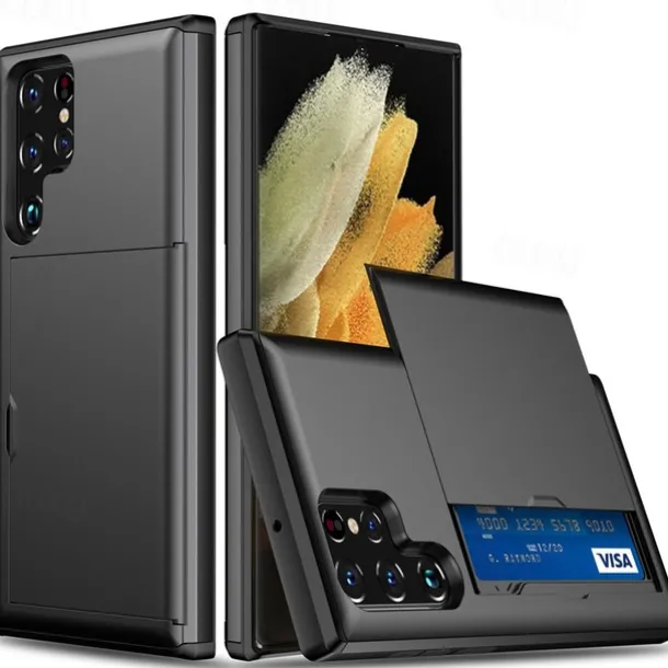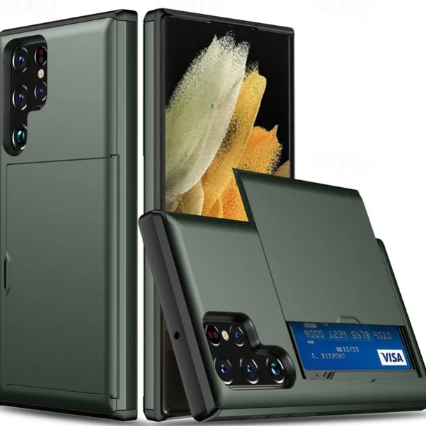Phone Case For Samsung Galaxy S25 S24 S23 S22 S21 FE S21 Ultra Plus S20 Back Cover Card Holder Dustproof Shockproof Solid Colored TPU