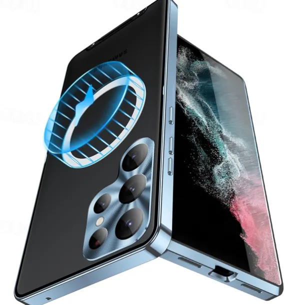 Phone Case For Samsung Galaxy S25 S24 S23 S23 FE S22 S21 Ultra Plus Magnetic Adsorption With Magsafe Camera Lens Protector Support Wireless Charging Shockproof Acrylic Aluminum Alloy