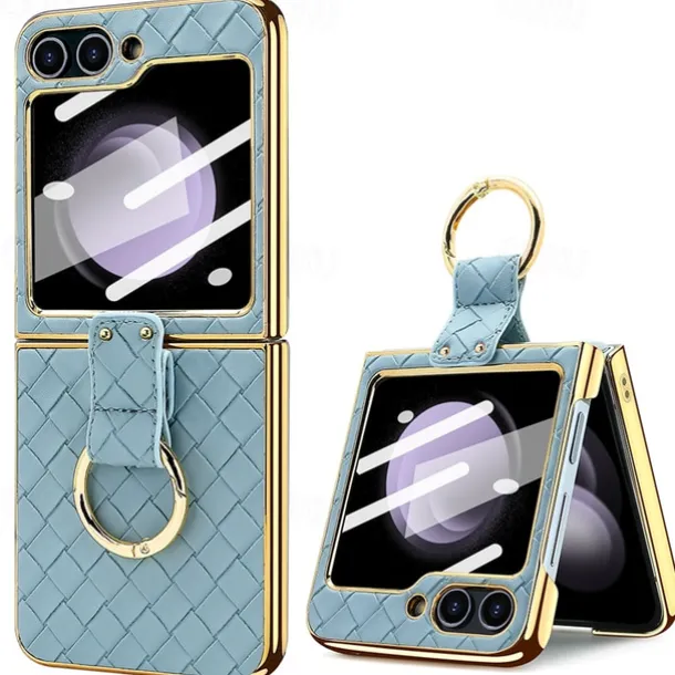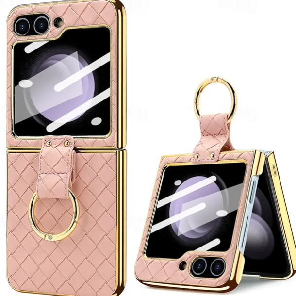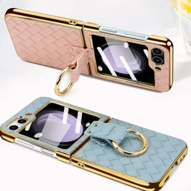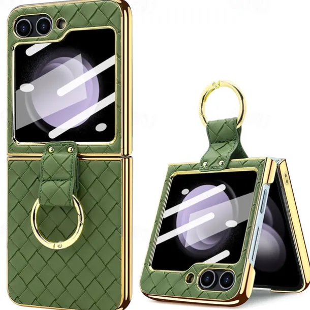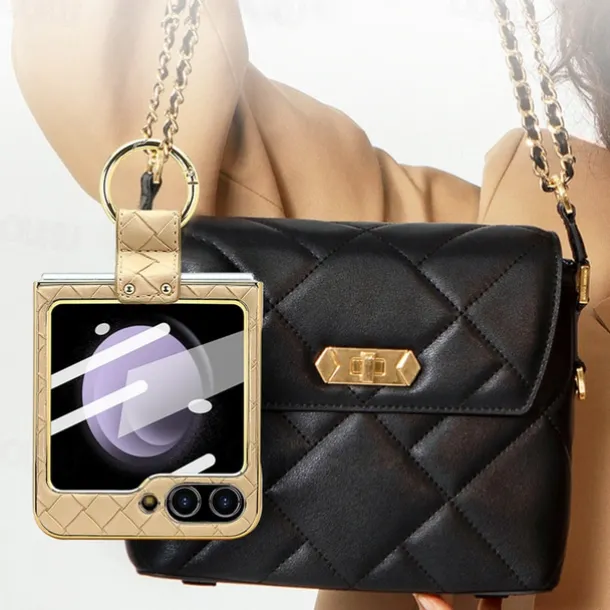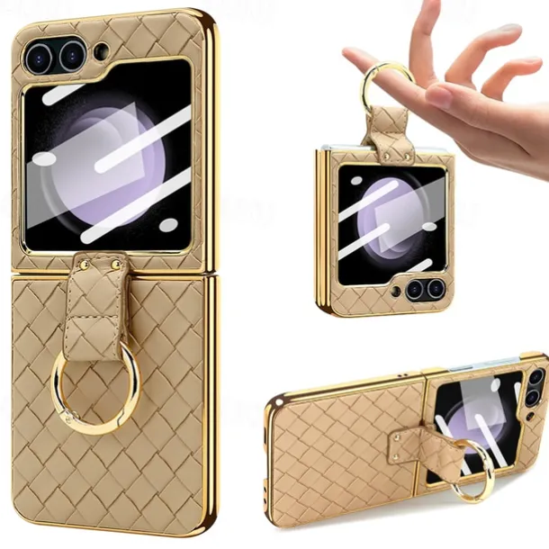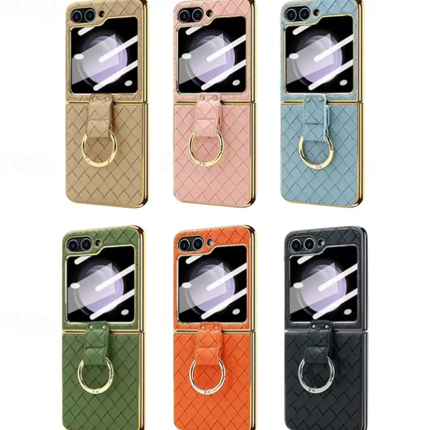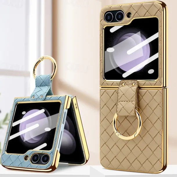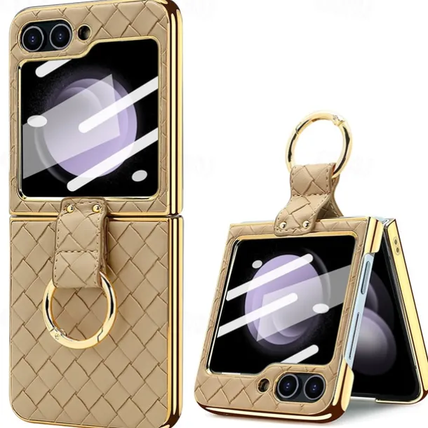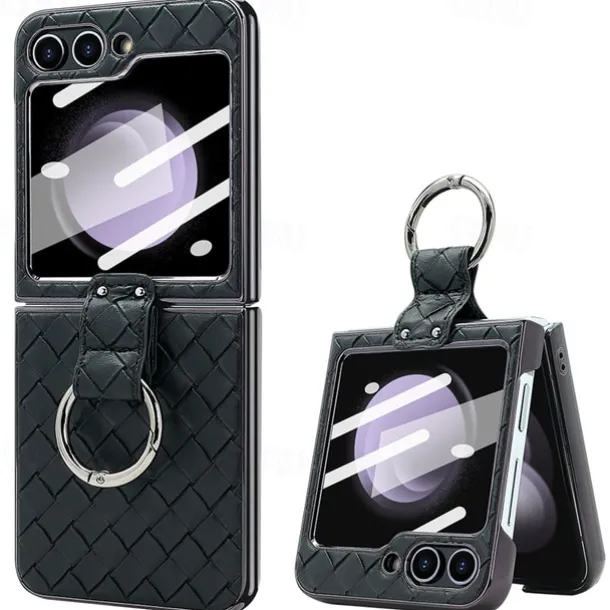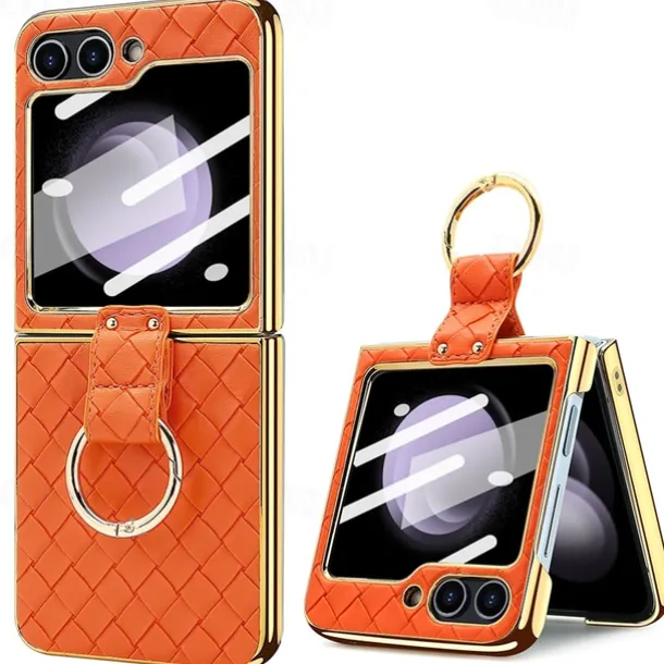 Phone Case For Samsung Galaxy Z Flip 6 Z Flip 5 Z Flip 4 Z Flip 3 Back Cover with Screen Protector Ring Holder Shockproof Retro TPU Metal PU Leather