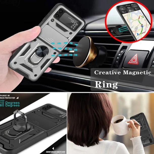 Phone Case For Samsung Galaxy Z Flip 7 Z Flip 5 Z Flip 4 Z Flip 3 Heavy Duty Ring Holder Dustproof Shockproof Solid Colored TPU