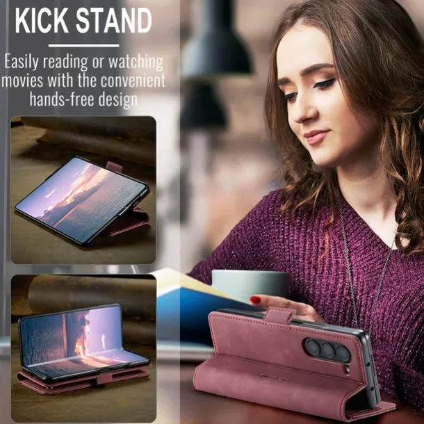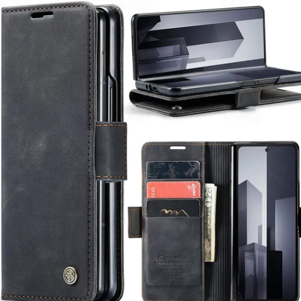 Phone Case For Samsung Galaxy Z Fold 7 Z Fold 6 Z Fold 5 Z Fold 4 Flip Cover with Stand Holder Magnetic Card Slot Retro TPU PU Leather