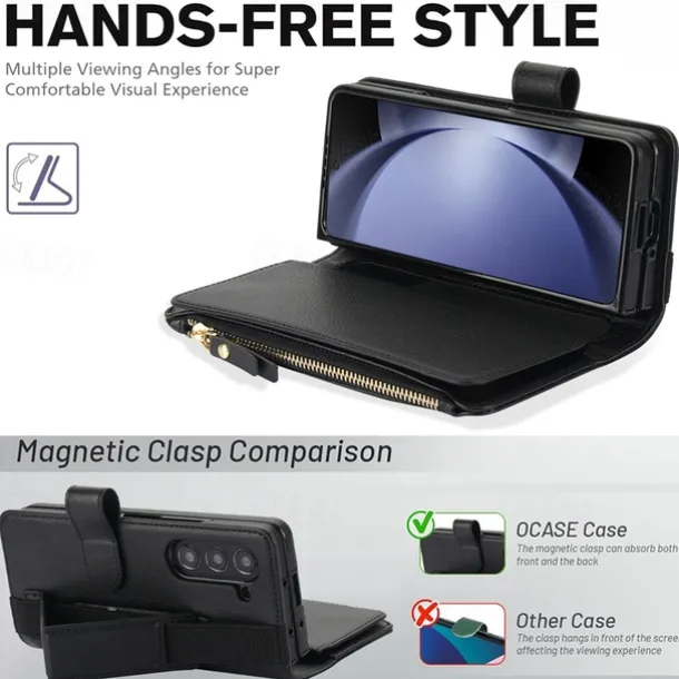 Phone Case For Samsung Galaxy Z Fold 7 Z Fold 6 Z Fold 5 Z Fold 4 Z Fold 3 Wallet Case with Stand Holder Magnetic Zipper Retro TPU PU Leather