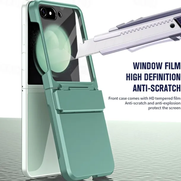 Phone Case For Z Flip 6 Z Flip 5 Back Cover with Screen Protector Shockproof Retro TPU PC
