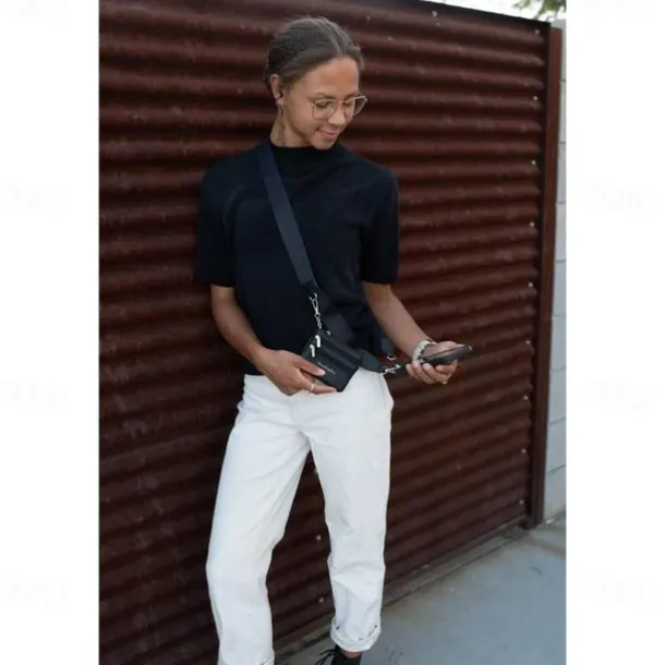 Phone Strap with Zippered Pouch Adjustable Nylon Canvas Crossbody Lanyard Detachable Wristlet & Innovative Hanging Phone Card