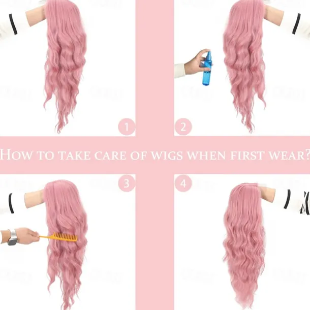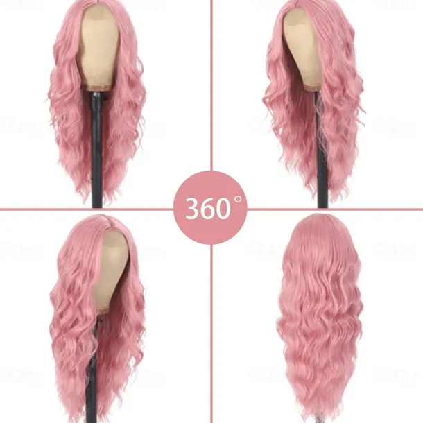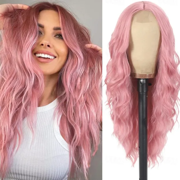 Pink Wig 26inch Long Wavy Wigs for Women Middle Part Curly Wig Natural Looking Heat Resistant Fiber Synthetic Wigs for Daily Use