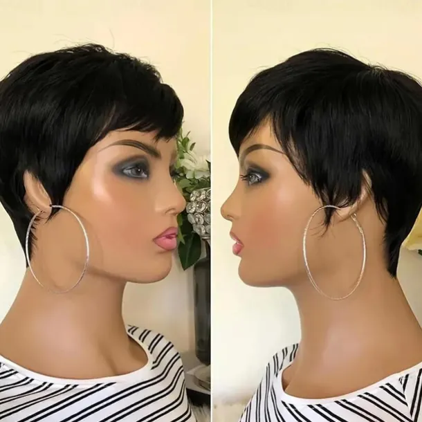 Pixie Cut Wig Human Hair Wigs For Black Women Short Human Hair Wigs with Bangs Pixie Cut Short Straight Black Wigs Full Machine Made Glueless Wigs