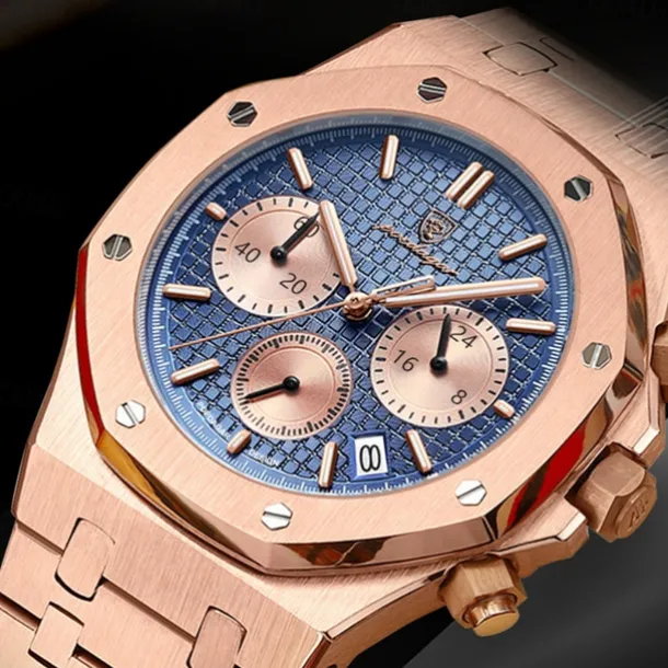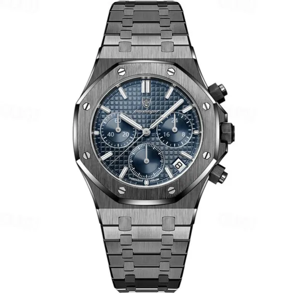 POEDAGAR Men Quartz Watch Outdoor Sports Fashion Casual Luminous Calendar Chronograph Waterproof Steel Watch