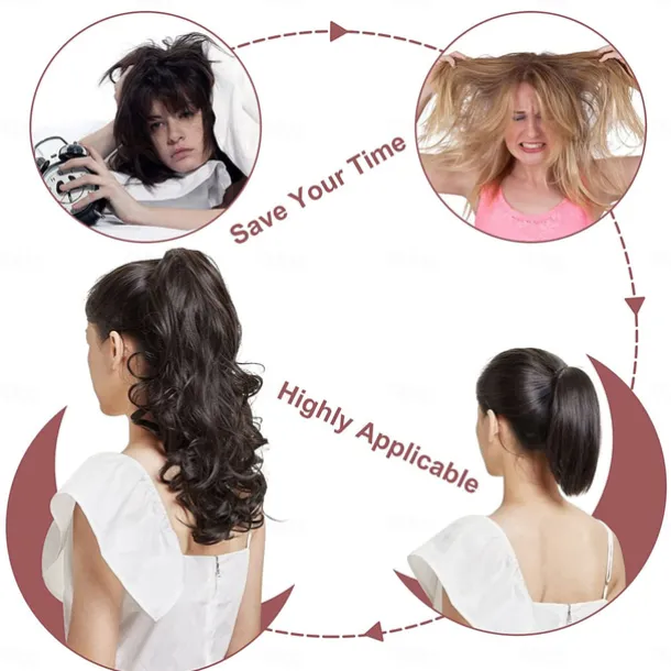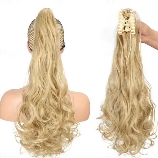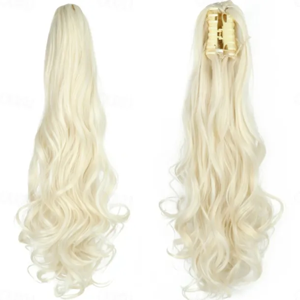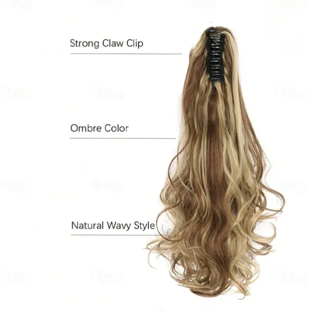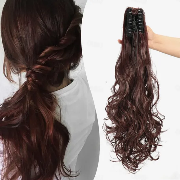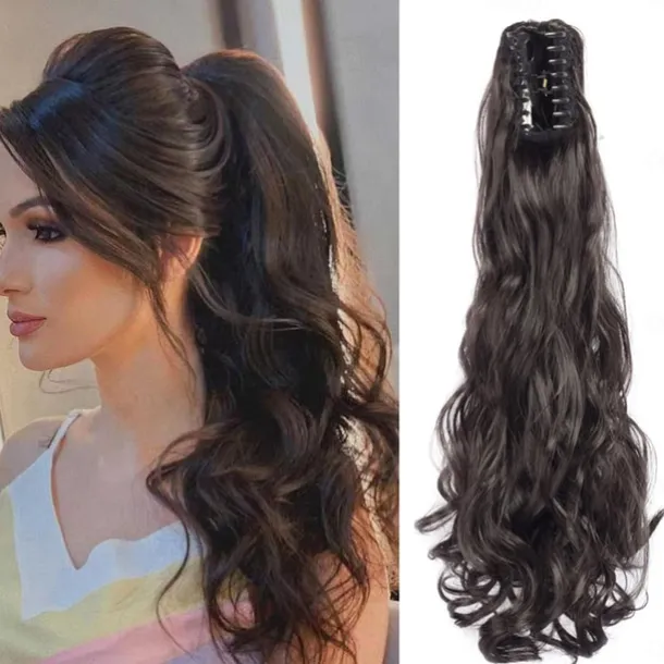 Ponytail Extension Clip in Claw 22 Inch Curly Wavy Pony Tails Clip-on Long Hairpiece Jaw for Women Dark Brown