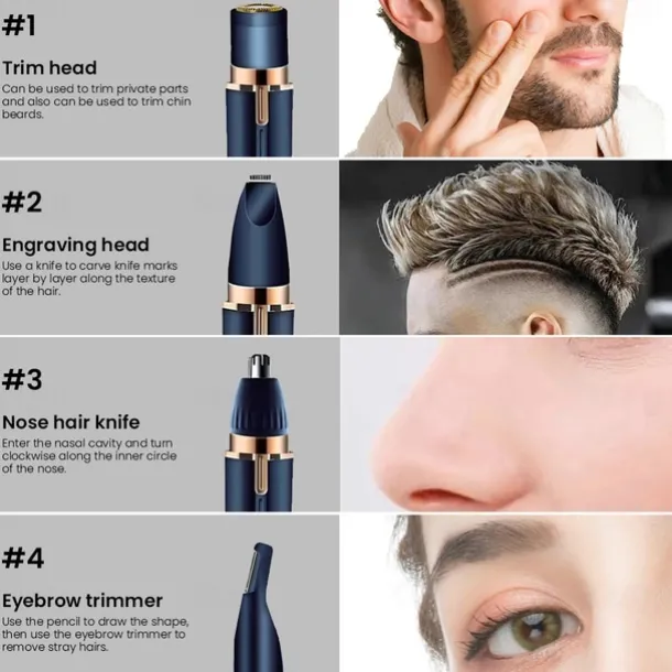 – 4 In 1 Multi-purpose and Washable: Comes with 4 replaceable heads for various functions, including hair removal, nose hair trimming, hair clipping, and eyebrow trimming. All heads are washable and replaceable, ensuring a hygienic and healthy experience.