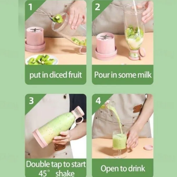 Portable Juicer, Mini Electric Fruit Blender, Rechargeable Juice Maker, Compact Shake Cup for Smoothies & Juices