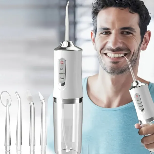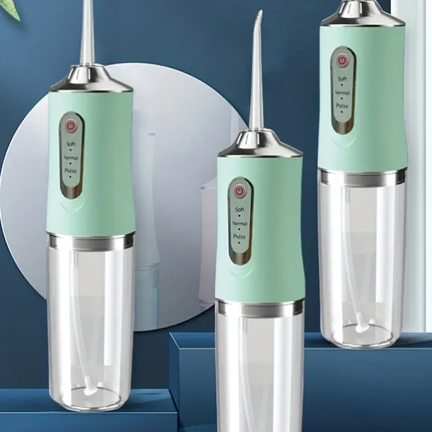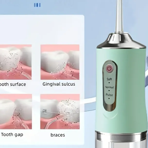 Portable Rechargeable Electric Teeth Irrigator with 4 Green Heads – Effective Oral Dental Seam Washer for Men and Women Perfect for Water Flossing and Cleaning