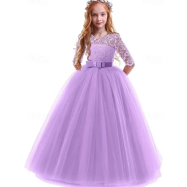 Design: Elegant flower girls dresses for weddings lace half sleeve princess formal long maxi evening prom ball gown birthday party full length dress for kids junior girls, floral lace, hidden back zipper closure, featuring beautiful design. Your little princess will be thrilled with this gorgeous floral lace bow layered tulle tutu dress.Features: Cute child toddler long prom dresses for girls.O Neck,High-waisted design, half sleeves, floor length, hollow out floral lace spliced, back zipper, A bow bow-knot decor at waist, hidden back zipper closure,A modern take on a timeless look, the ultra classic Sweetheart top translucent lace design gives a romantic look and feel for any occasion,this is the best choice for your daughter(little lover),Little/big girls maxi summer dresses tutu skirt sleeveless clothes for girls