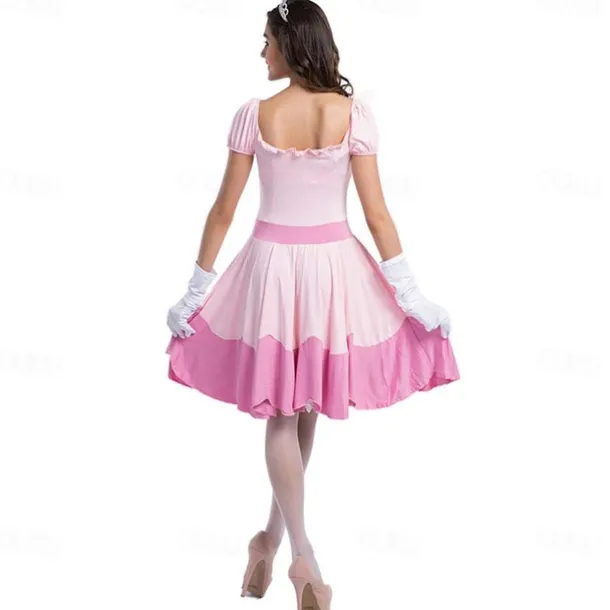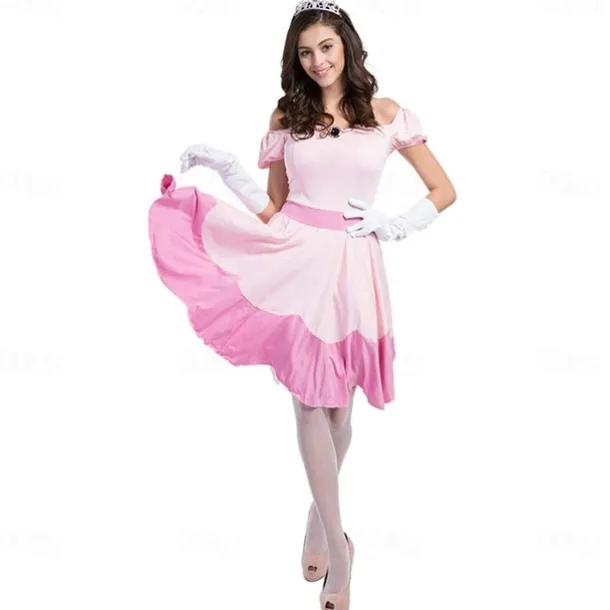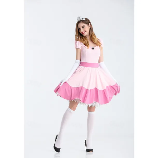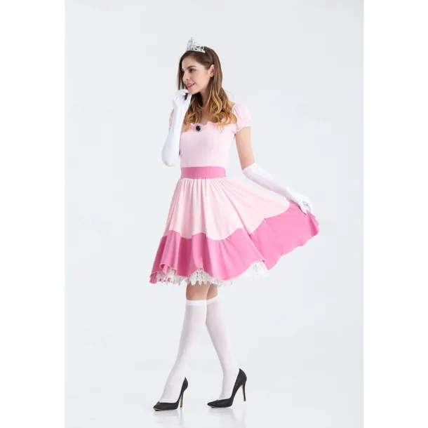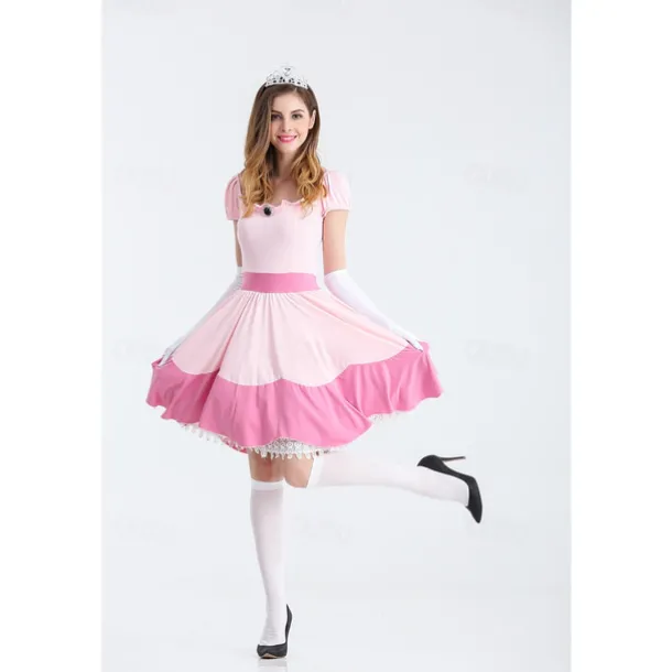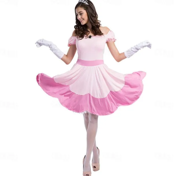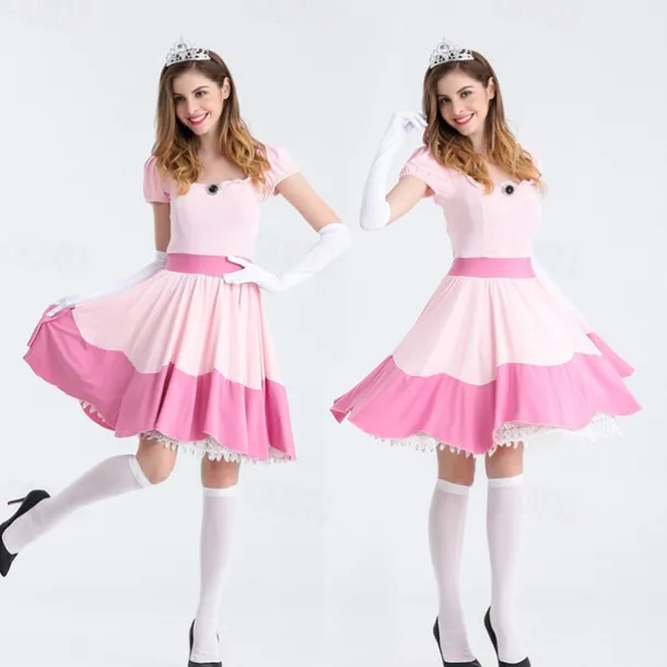 Princess Peach Cosplay Costume 3 PCS Super Bros Dress Tiara Gloves Adults’ Women’s Outfits Sexy Costume Halloween Masquerade Easy Halloween Costumes