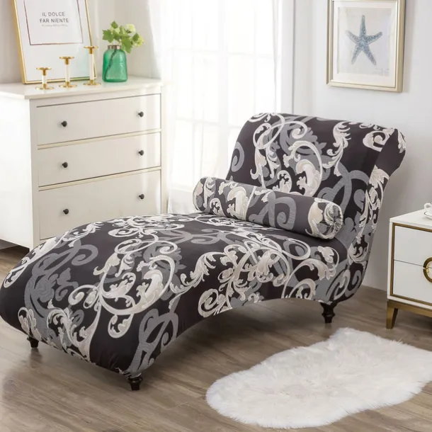 Printed Armless Chaise Lounge Cover Indoor Slipcover Stretch Chair Covers for Living Room Bedroom Stretch Armless Lounge Chaise Slipcover