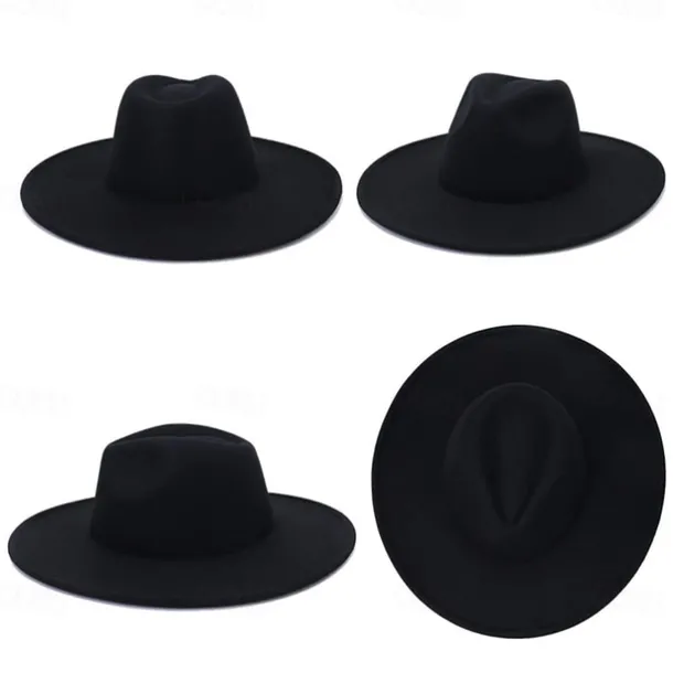 Punk Gothic Wide Brim Hat Fedora Hat Witchy Stiff Women’s Fashion Accessory Black Wool Wide Brim Steampunk Witch Hat
