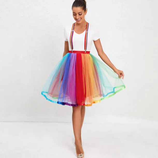 Rainbow Halloween Skirt Tutu Under Skirt LGBT LGBTQ Carnival Costume Gay Lesbian Adults’ Women’s Carnival Masquerade Pride Parade Pride Month Easy Halloween Costumes Dress Up